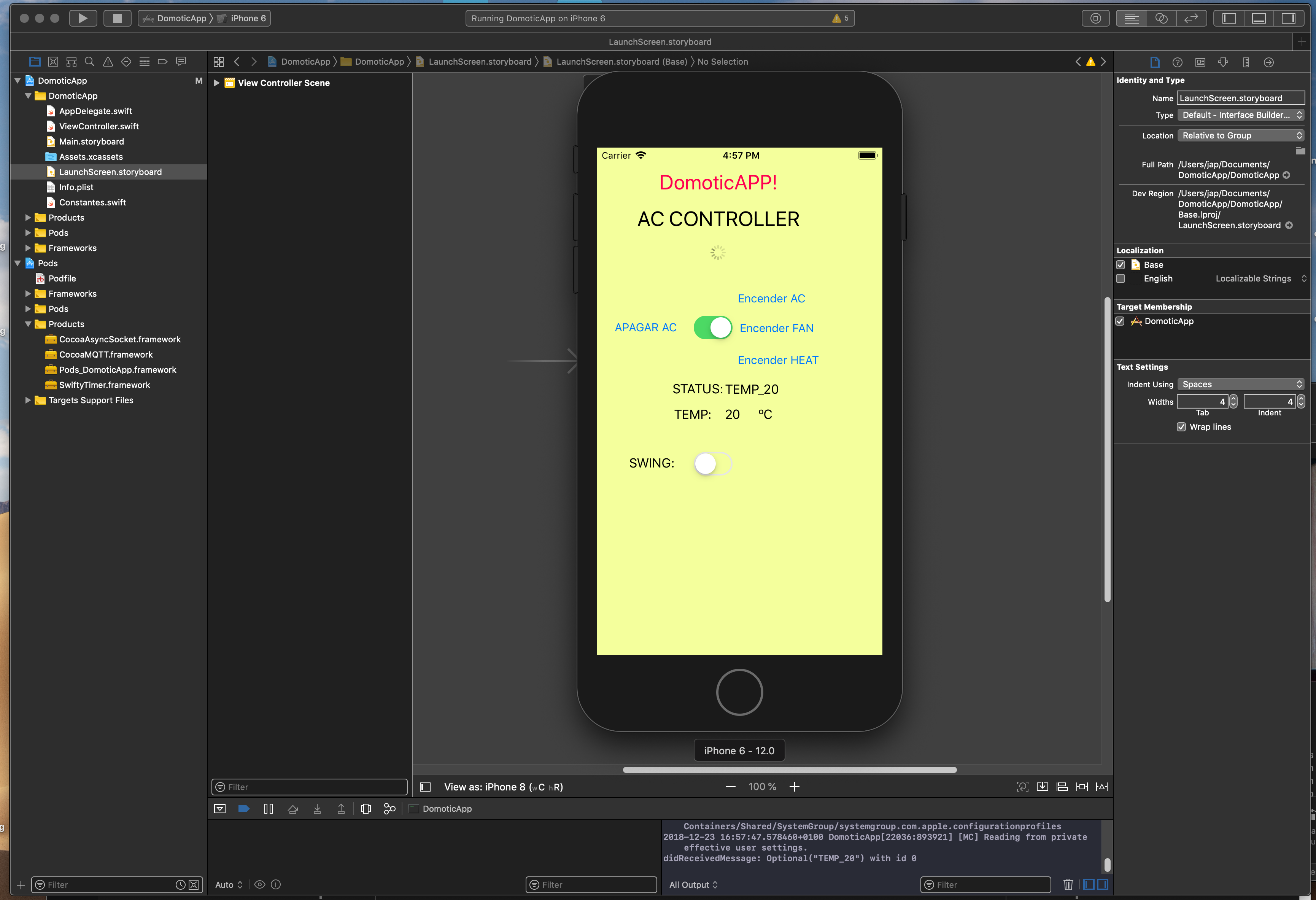 Aproveché la coyuntura para hacerla en otro lenguaje distinto al que había utilizado en la estación meteorológica y en esta ocasión la programé utilizando el nuevo lenguaje Swing deApple también nativo para iOS, integrando librerías CocoaMQTT FrameWork.