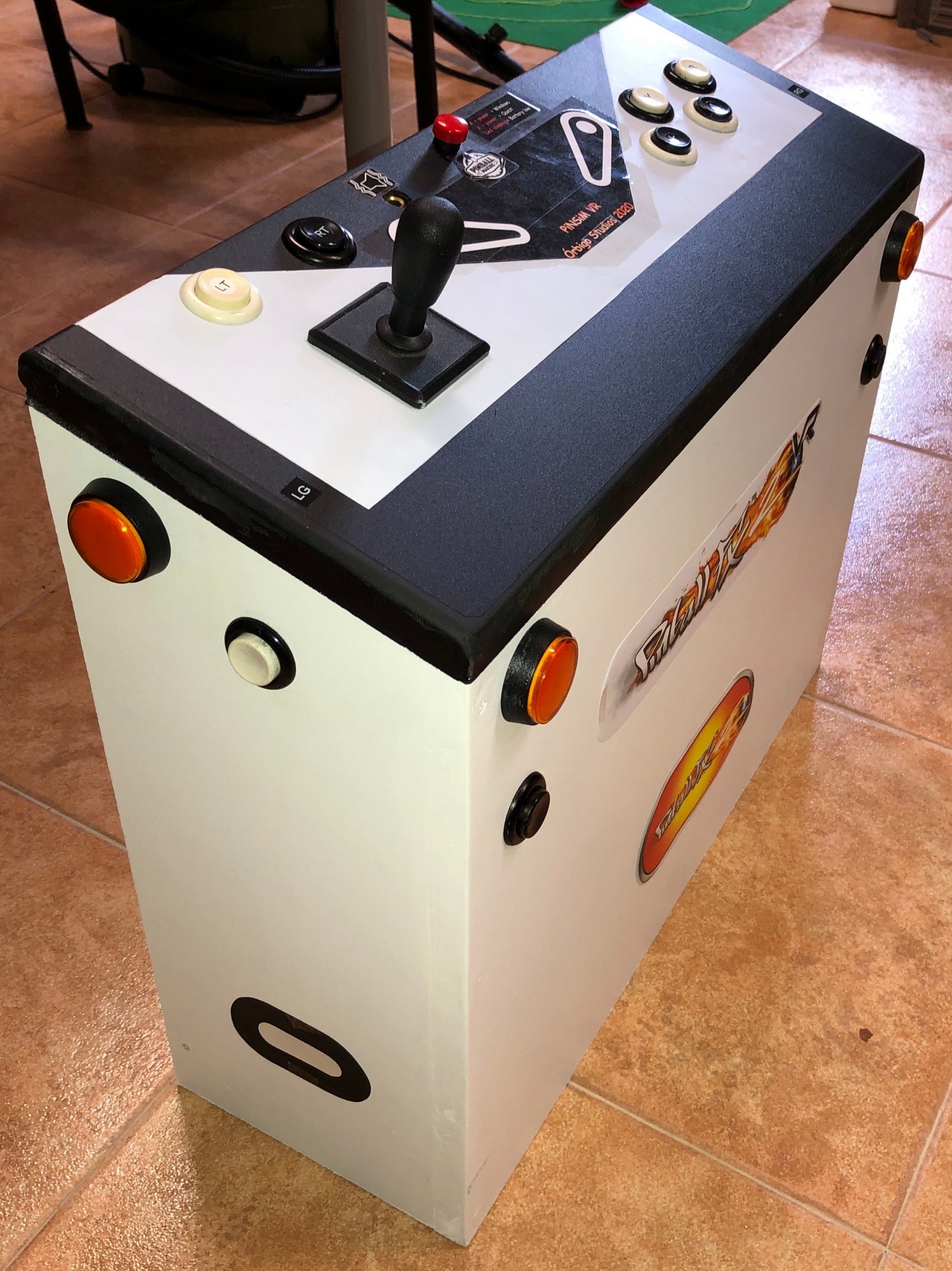 La base de este joystick es un cajón de madera, lacado en blanco, con un fresado adecuado en los bordes para simular la lockbar metálica de los pinball.