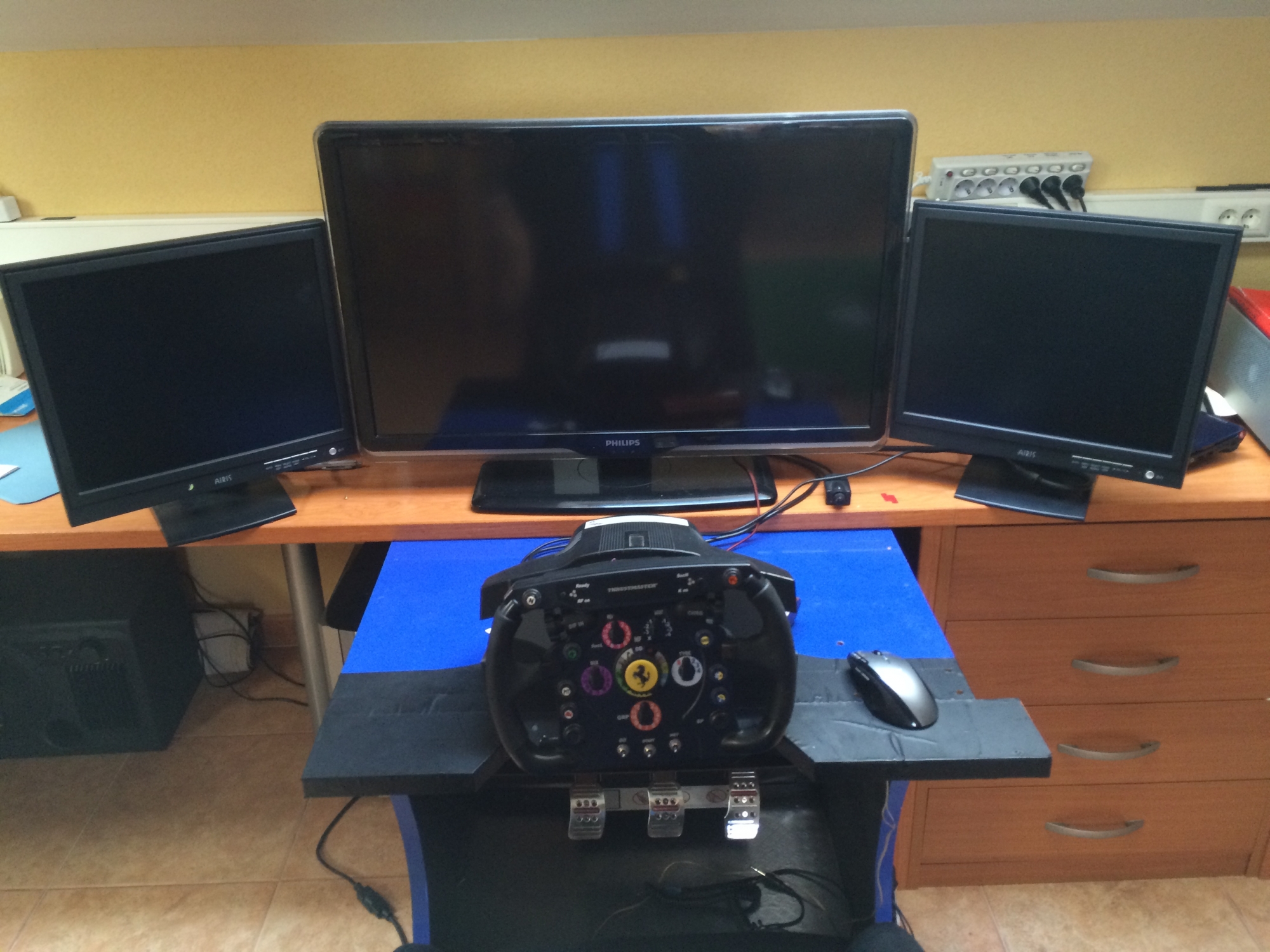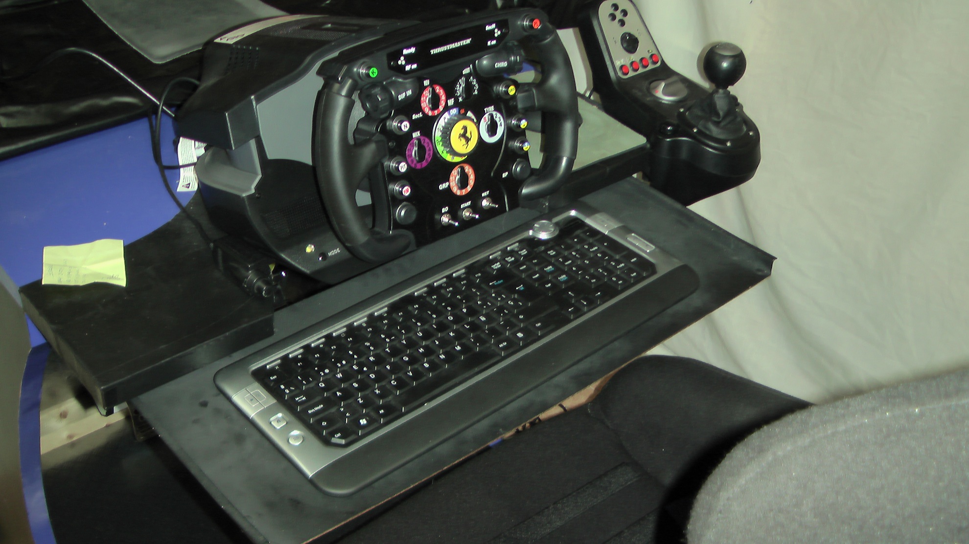 La idea era construir un cockpit (cabina de conducción) donde se pudieran colocar diferentes pedaleras y volantes que fuera vayan pasando por mis manos.