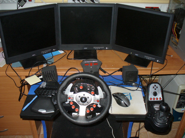 Con los años se sustituyeron también los 3 monitores de 17″ por 3 monitores de 24″ 3D stereoscópicos que proporcionaban un efecto mayor de realismo.