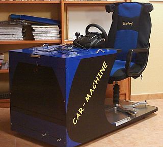 El proyecto del car-machine nació con la idea de ser un simple asiento ajustable para dar soporte a distintos volantes y pedales y evitar así la mala sensación ofrecida al jugar sentado en una silla de oficina y pedales sobre el suelo.